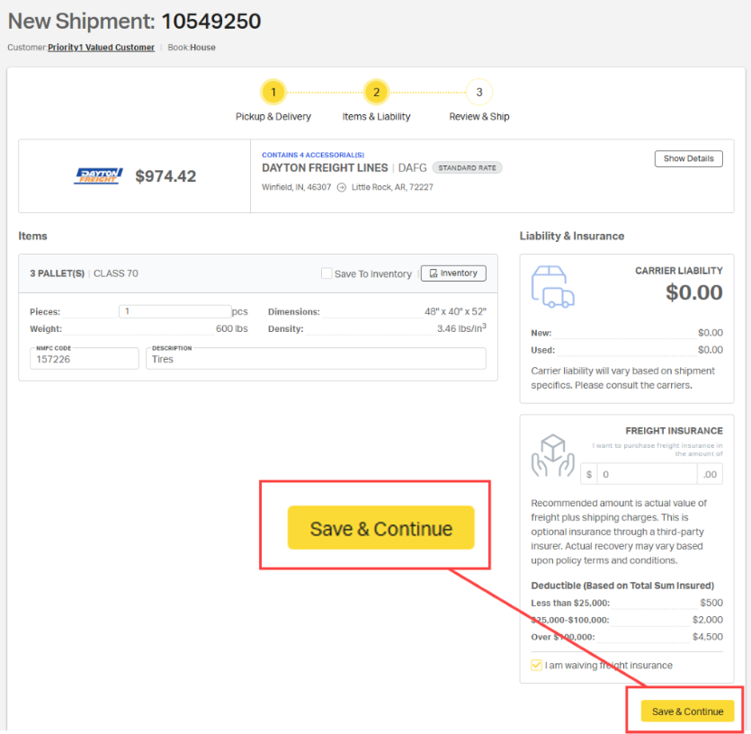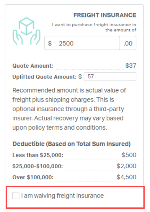 ⚠️Reminder: The Freight Insurance section is required. Users cannot move to the next page until Freight Insurance has been purchased or waived.