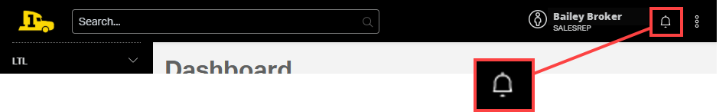- Web – Notifications are added to the Notifications icon (🔔) next to the user name in the Cabo header bar. Note that this option is only available for the user booking with shipment.