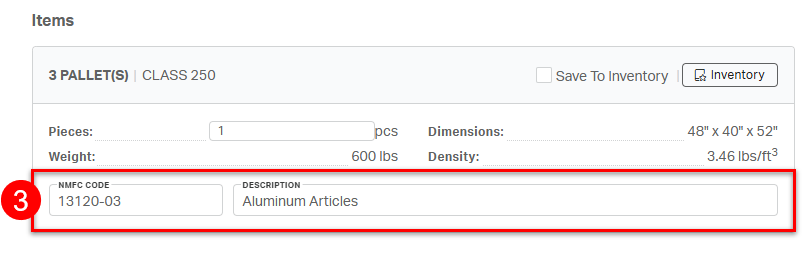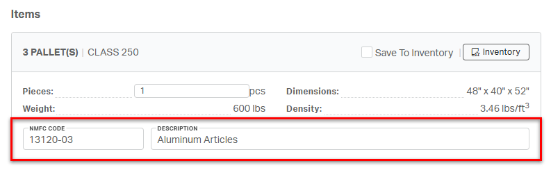 ⚠️ While not required for booking, including the correct NMFC code on a shipment prevents unexpected reclassification charges from the carrier on the final invoice.