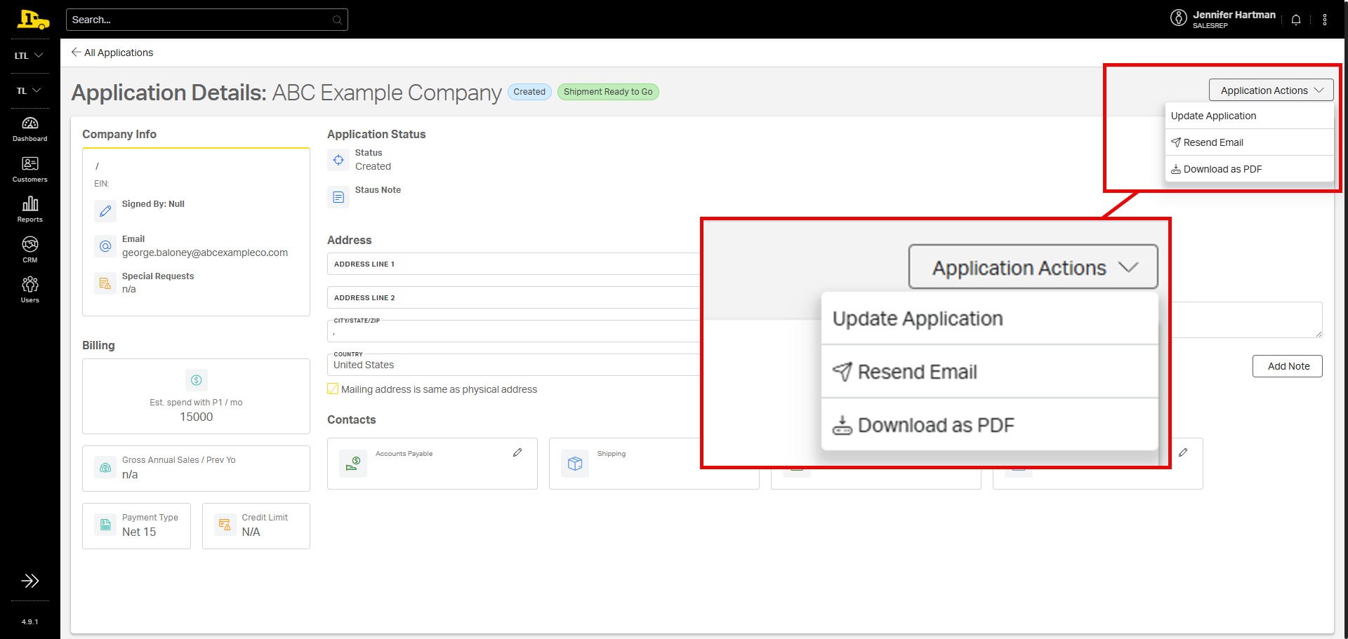 4. The Application Actions dropdown allows reps to update or resend the digital application, or they can download a PDF version.