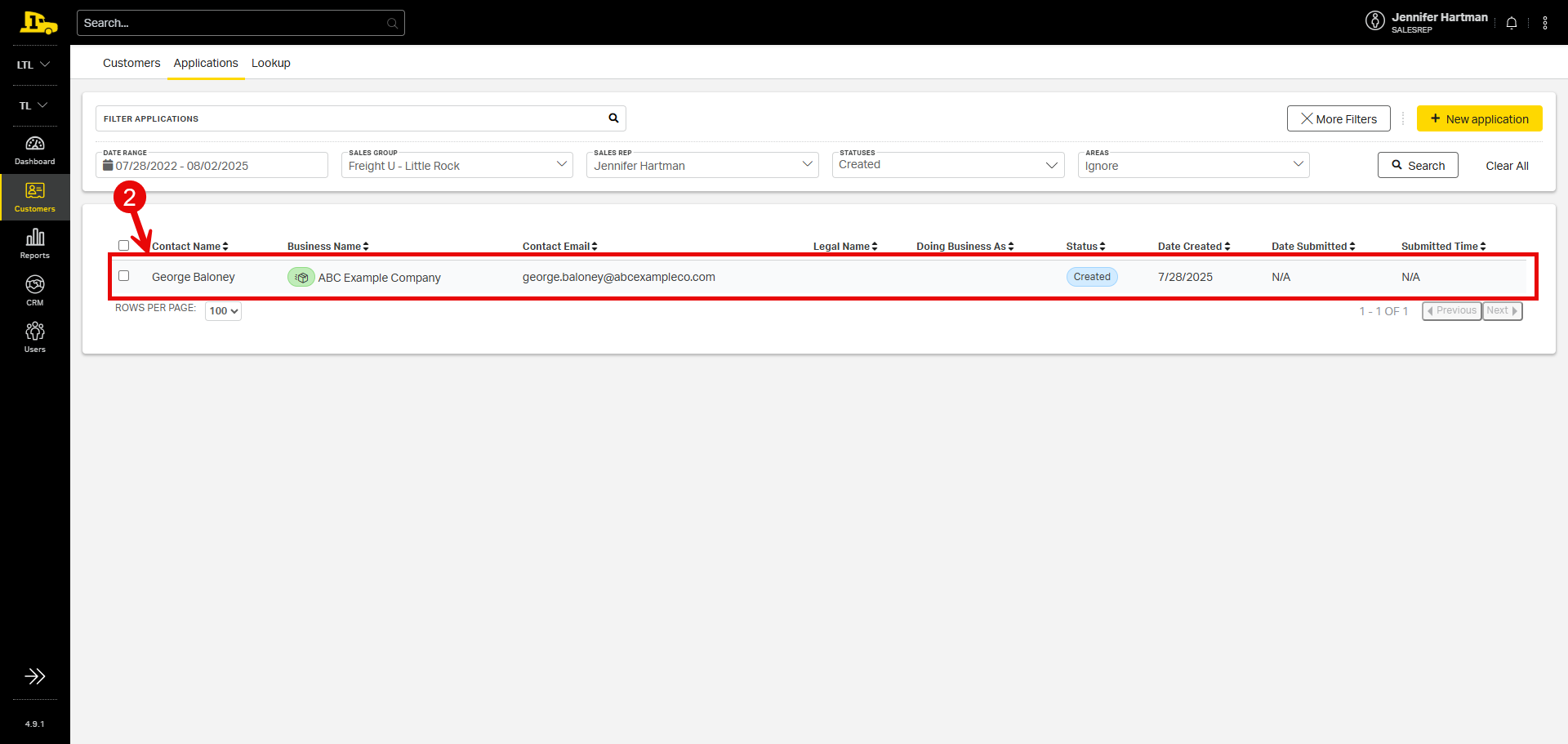 2. Applications that meet the search criteria will populate the screen. Clicking on the customer’s name will open the Application Details page.