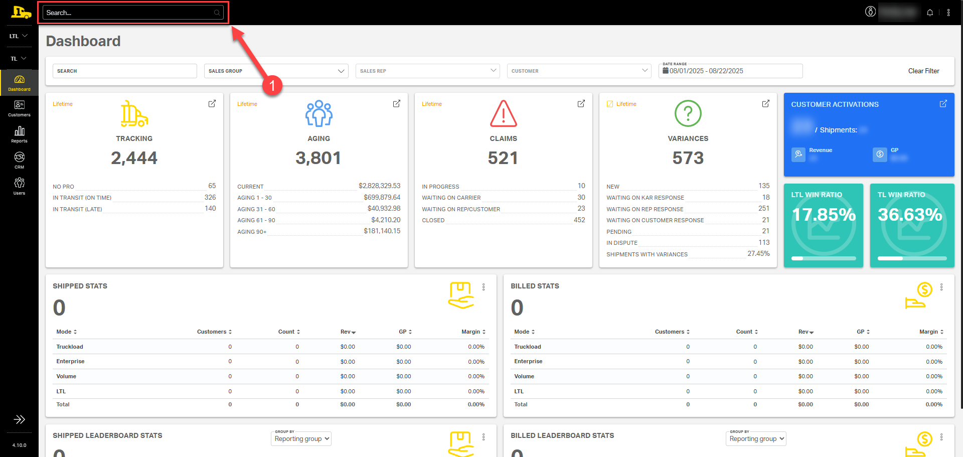 1. Omni Search: Enter one of the shipment's reference numbers (BOL, PRO, SO, etc.) into the search bar at the top and press Enter.