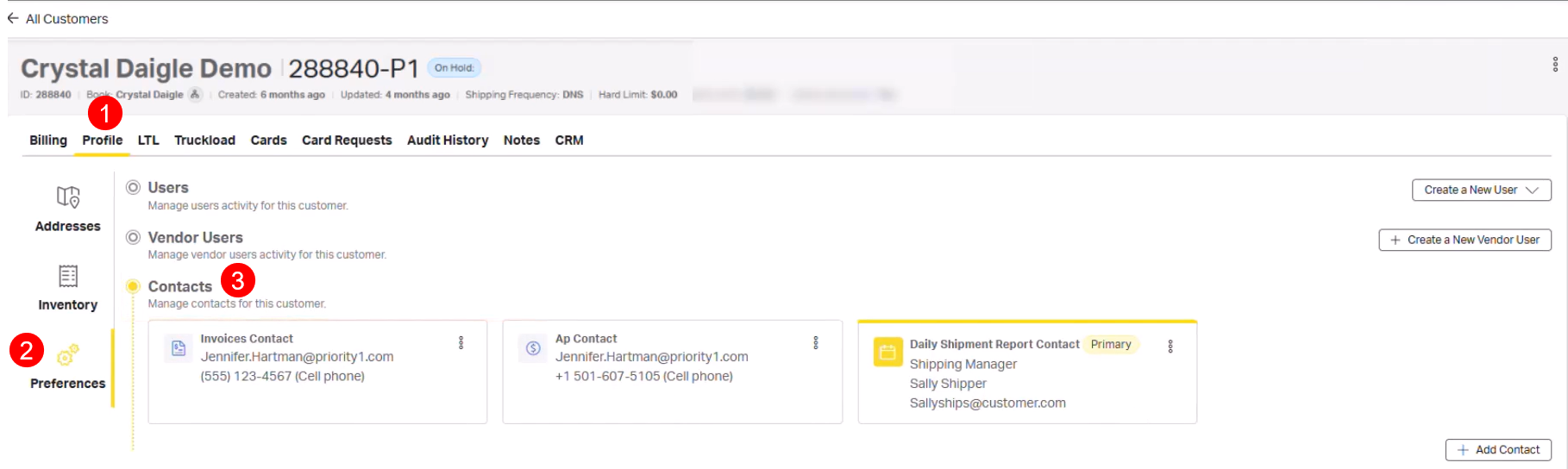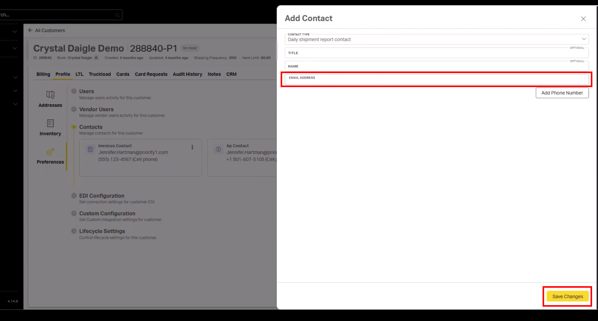 β οΈ Note: To ensure the Daily Shipment Report is sent, a Daily Shipment Report Contact must be set on the customer's account. Without this contact, the report will not be sent.