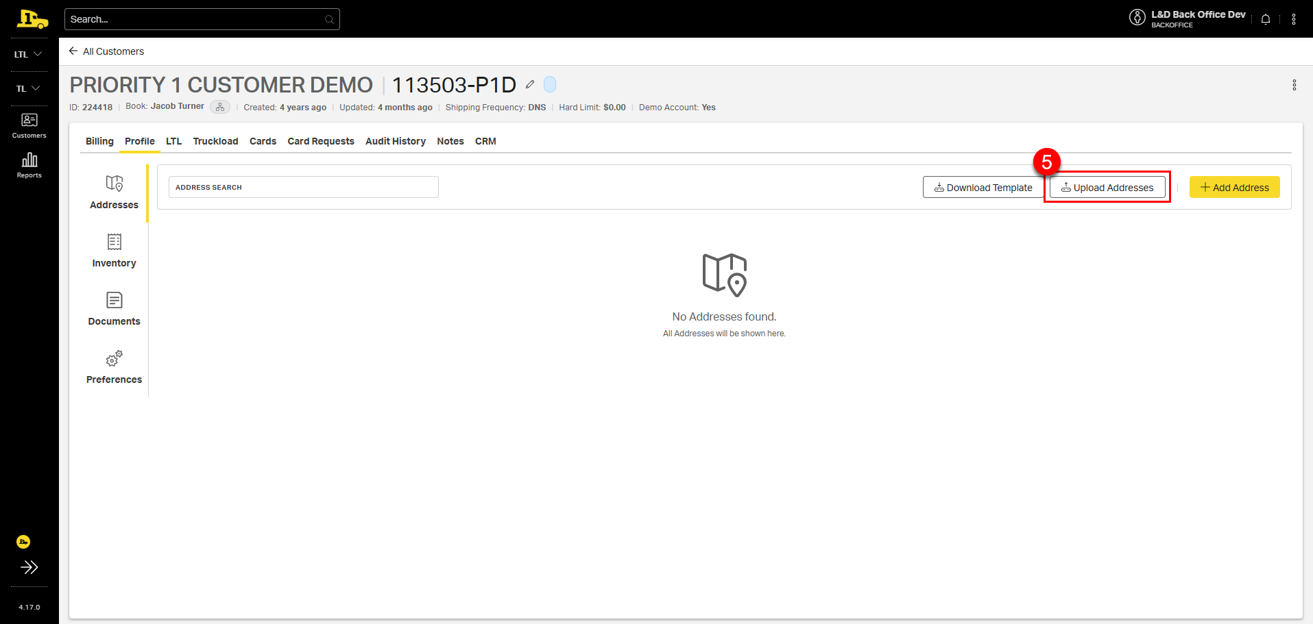 5. Select Upload Addresses.