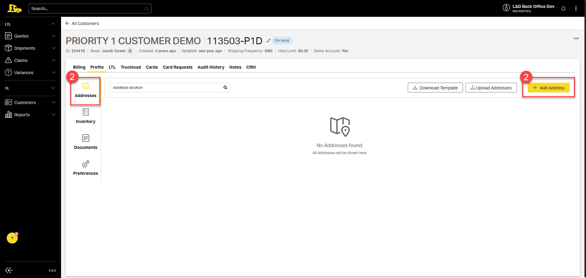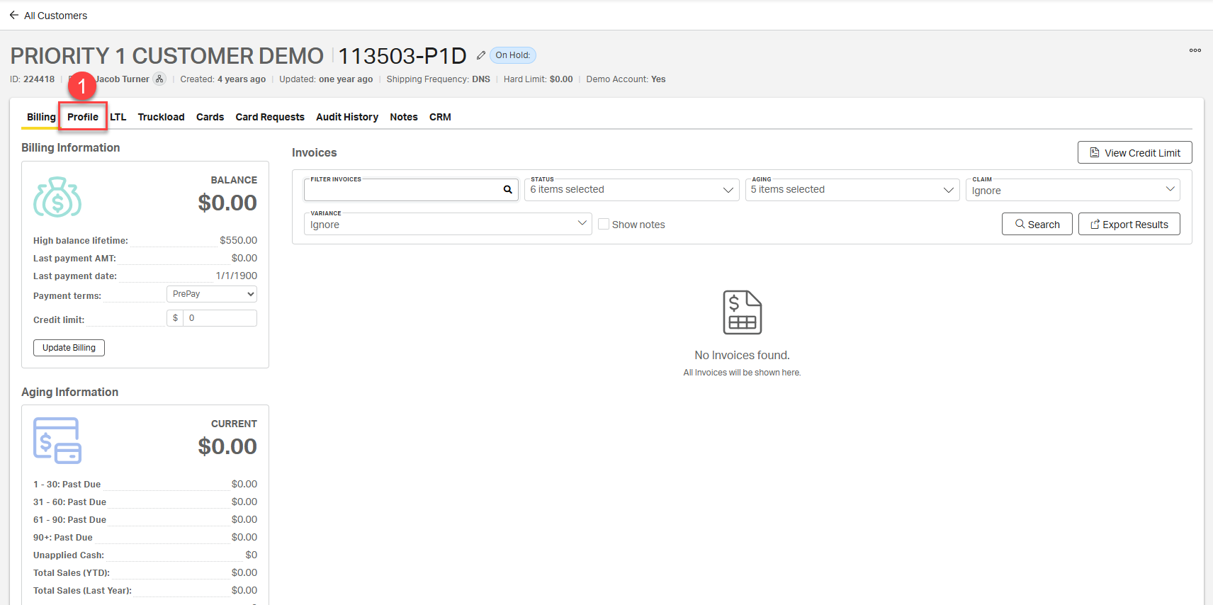 1. Navigate to the Profile tab on the customer account.