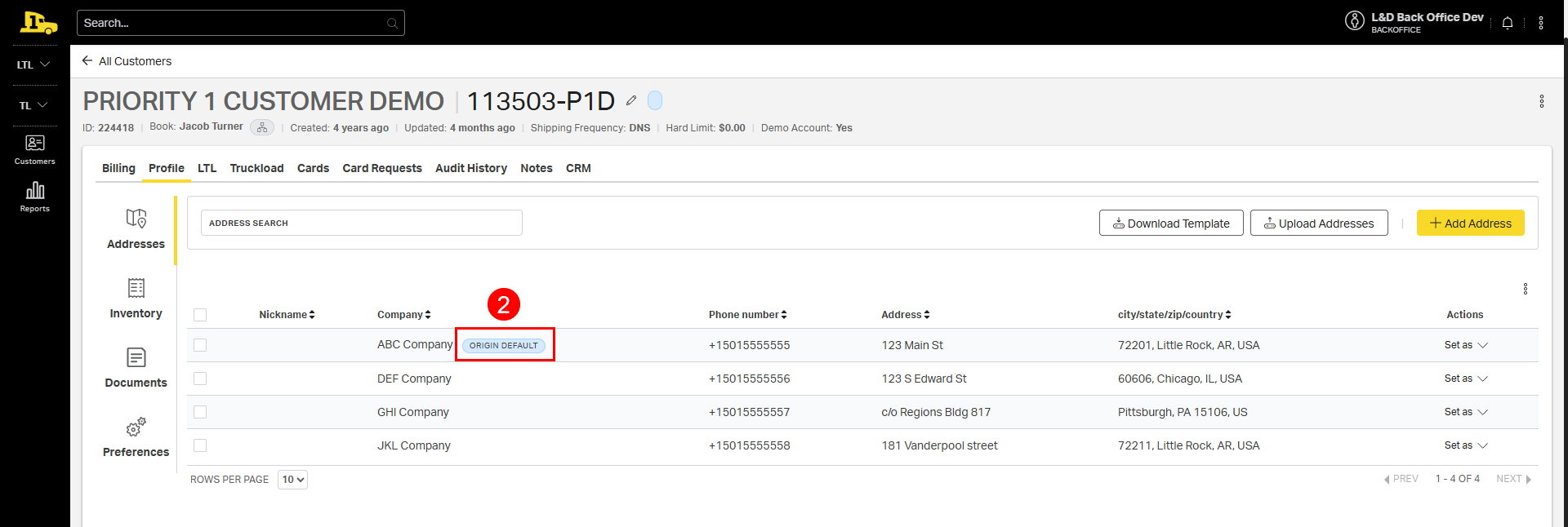 For customers who consistently ship from or deliver to the same location, designate a Default Origin Address or Default Destination Address. Default addresses are automatically added to future quotes to streamline the quoting process.