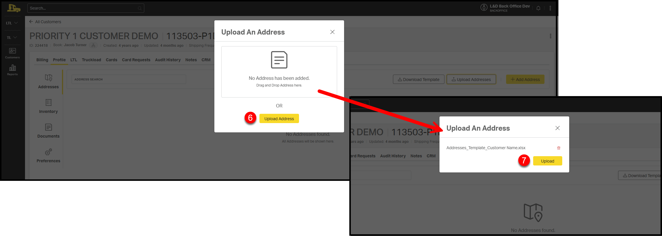 6. Select Upload Address to add your saved address template file.