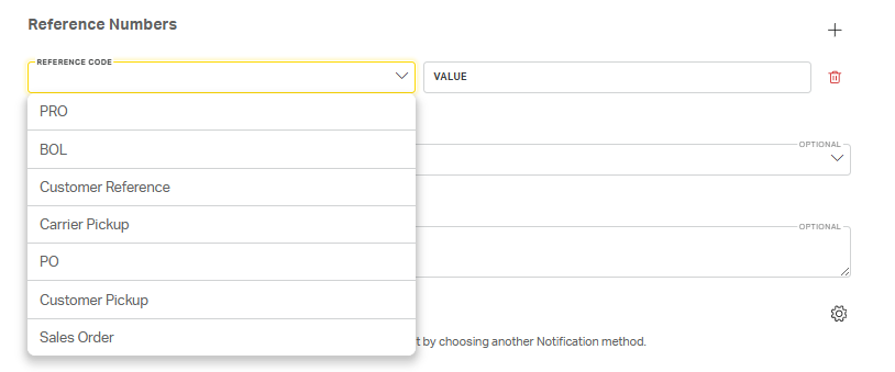 2. Reference Numbers: Add any reference numbers that should be linked to this address, such as PO, SO, or any other customer specific reference numbers. Selected reference numbers will auto populate on the BOL when booking shipments to/from this address.