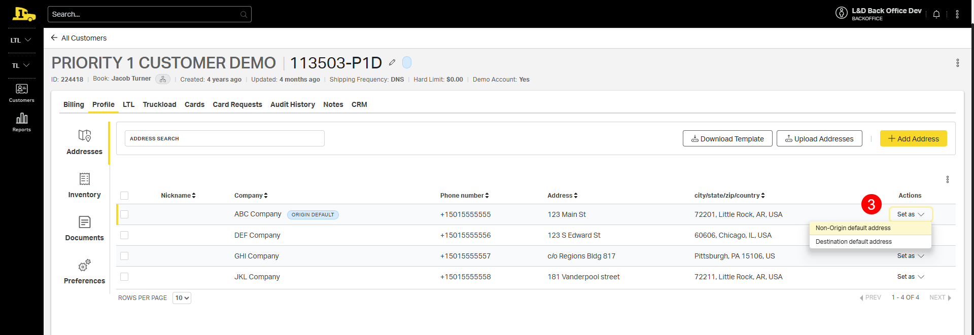- To remove a default, select Set as again and choose Non-origin default address or Non-destination default address.