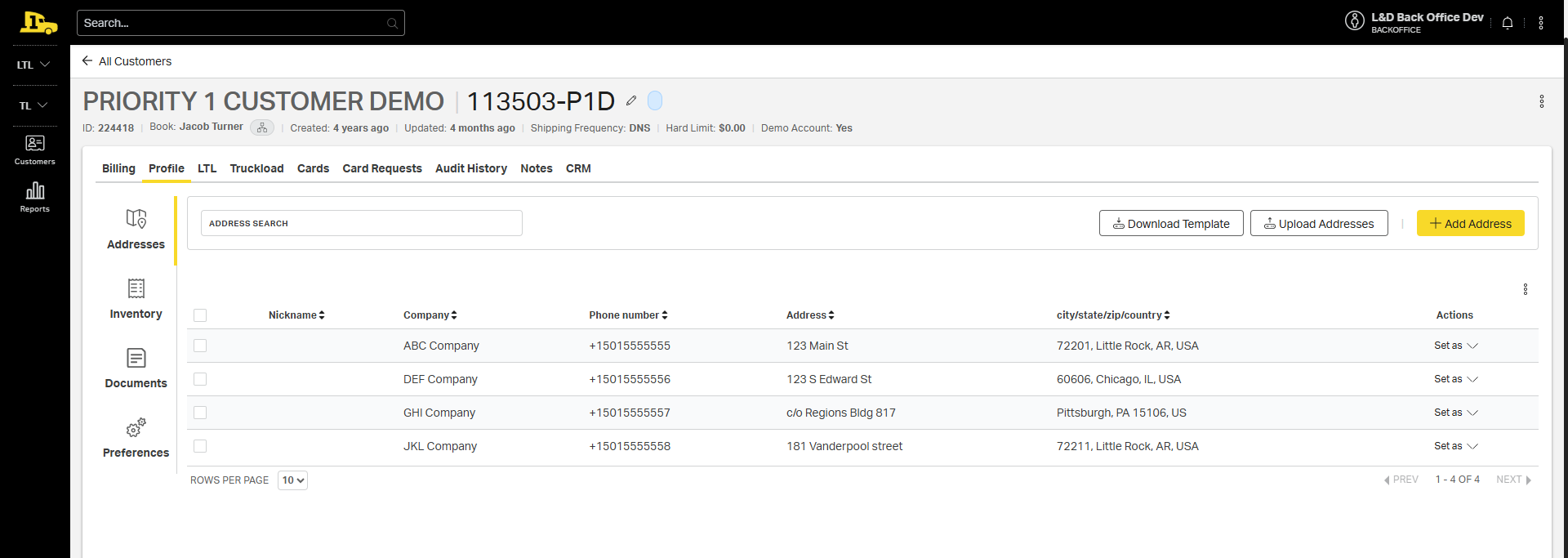 The customer's Address Book streamlines quoting and booking by storing frequently used addresses with preset details like accessorials, shipping hours, and preferred carriers. It reduces errors, saves time, and supports better communication with optional text or email notifications.