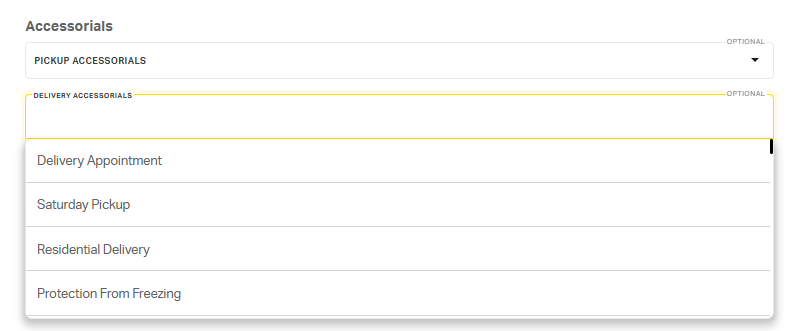 1. Accessorials: Tag any accessorials that will always be needed for this address for pickup, delivery, or both. Selected accessorials will auto-populate on the quoting page when this address is selected.