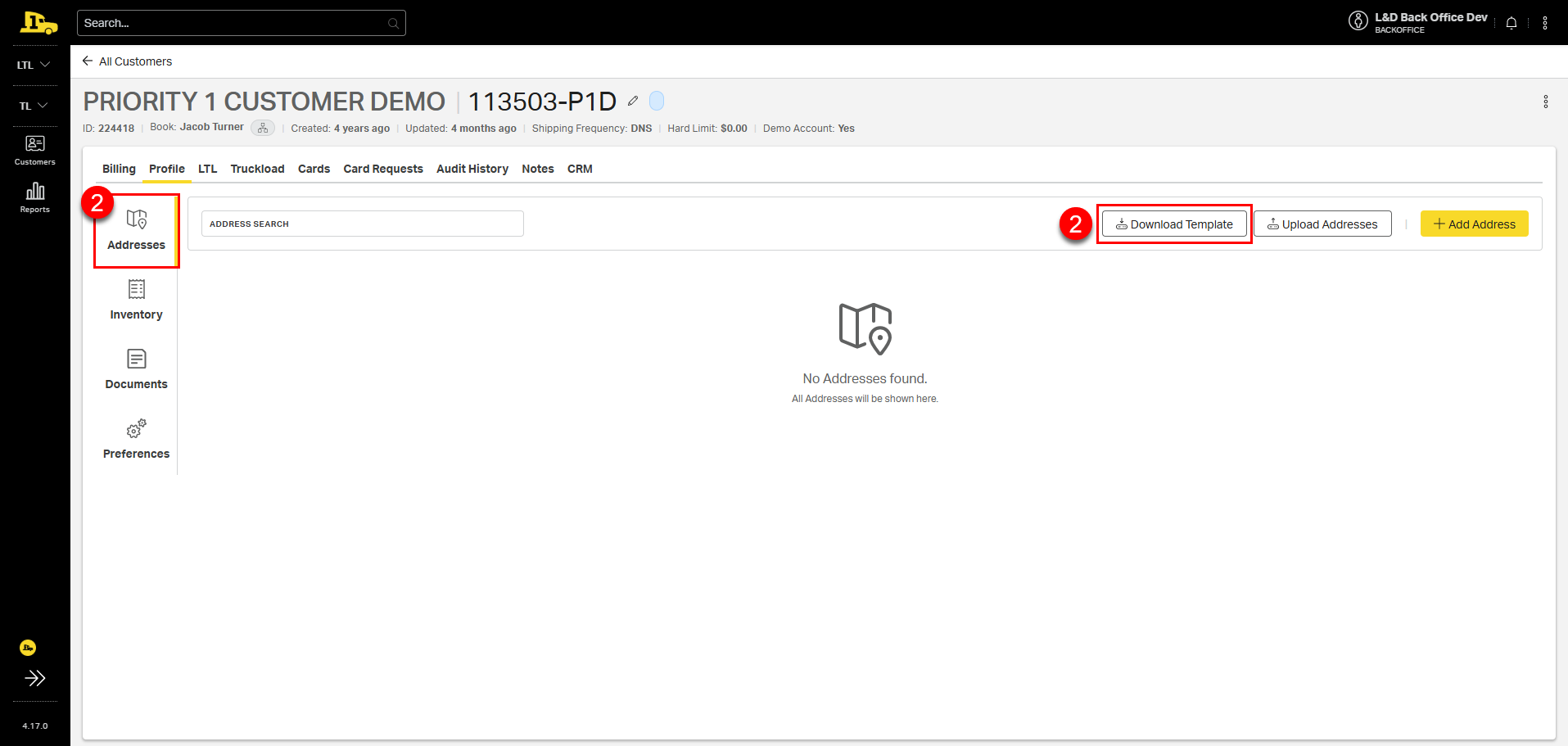 2. In the Addresses section, click Download Template.